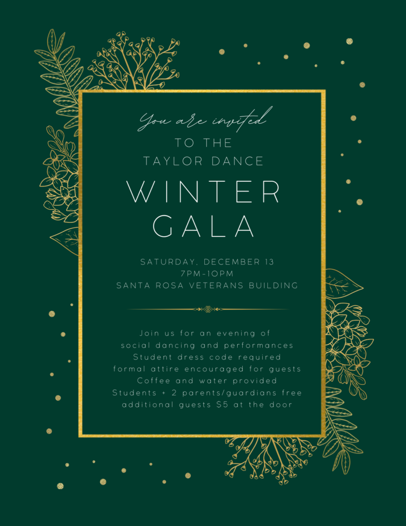 Mr. and Mrs. Taylor met in this very program 15 years ago in High School and quickly fell in love with dance and each other. They continued their dance training with top professionals while competing throughout west coast swing circuit including the US Open. In addition to dance on Tuesday nights, they can frequently be seen teaching dance at schools throughout the county and working privately with adults. They are so honored to take over a program where they can have a positive impact on teens in Sonoma County to teach Ballroom Dance.